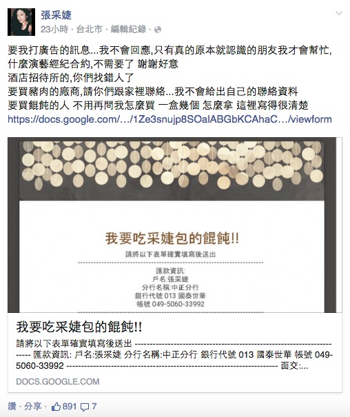 爆紅也找來了許多各式各樣的邀約,對於網友的欣賞她也表示相當感謝,但還是希望能回歸正常生活…(單純賣餛飩之類的)