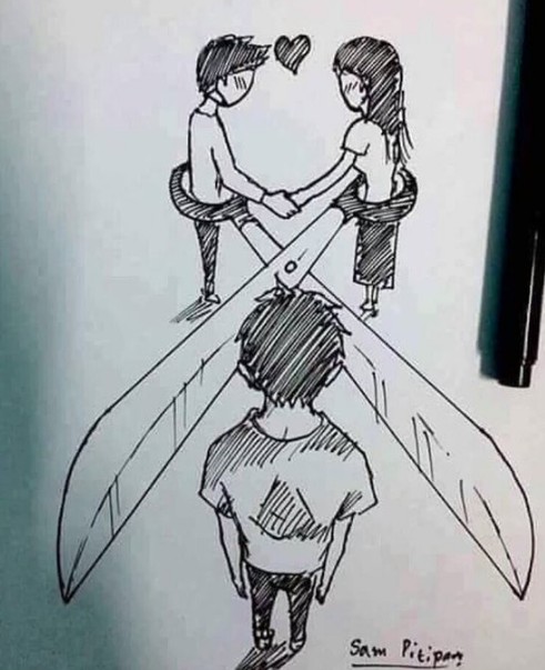 愛讓人快樂、也會讓人受傷,默默暗戀的人面對自己喜歡的人有另一半時更是痛苦,藝術家Sam Pitipar的插畫就完美畫出了這樣的感受。這張生動插畫一PO上網就引起廣大迴響,超過3萬名推特用戶轉發,網友在下面紛紛留下回應「這是愛真正深層的模樣。」、「好悲傷的插畫,我曾經也像他站在刀鋒內,慢慢的被切成兩半。」、「這讓我想起了初戀的痛苦回憶,」、「就算你暗戀的人不會愛你,你還是忍不住要站得這麼靠近。」