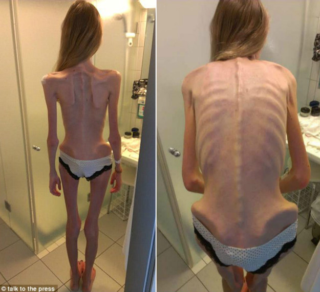 來自奧地利、22歲的漢娜(Hannah Koestler)原本是一位身材高挑、笑容可掬的180公分美女,然而5年前罹患厭食症後,體重逐漸往下掉,一度只剩30公斤左右,身體質量BMI指數只有11(健康BMI指數為18至24),被醫生警告再瘦下去就會死掉。