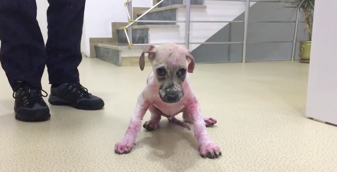 5. 也因為全身都被膠水黏在一起,狗狗只要動一下就會全身劇痛,讓人看了鼻酸。而志工們決定幫他取名為帕斯科,並且要幫他恢復原貌。