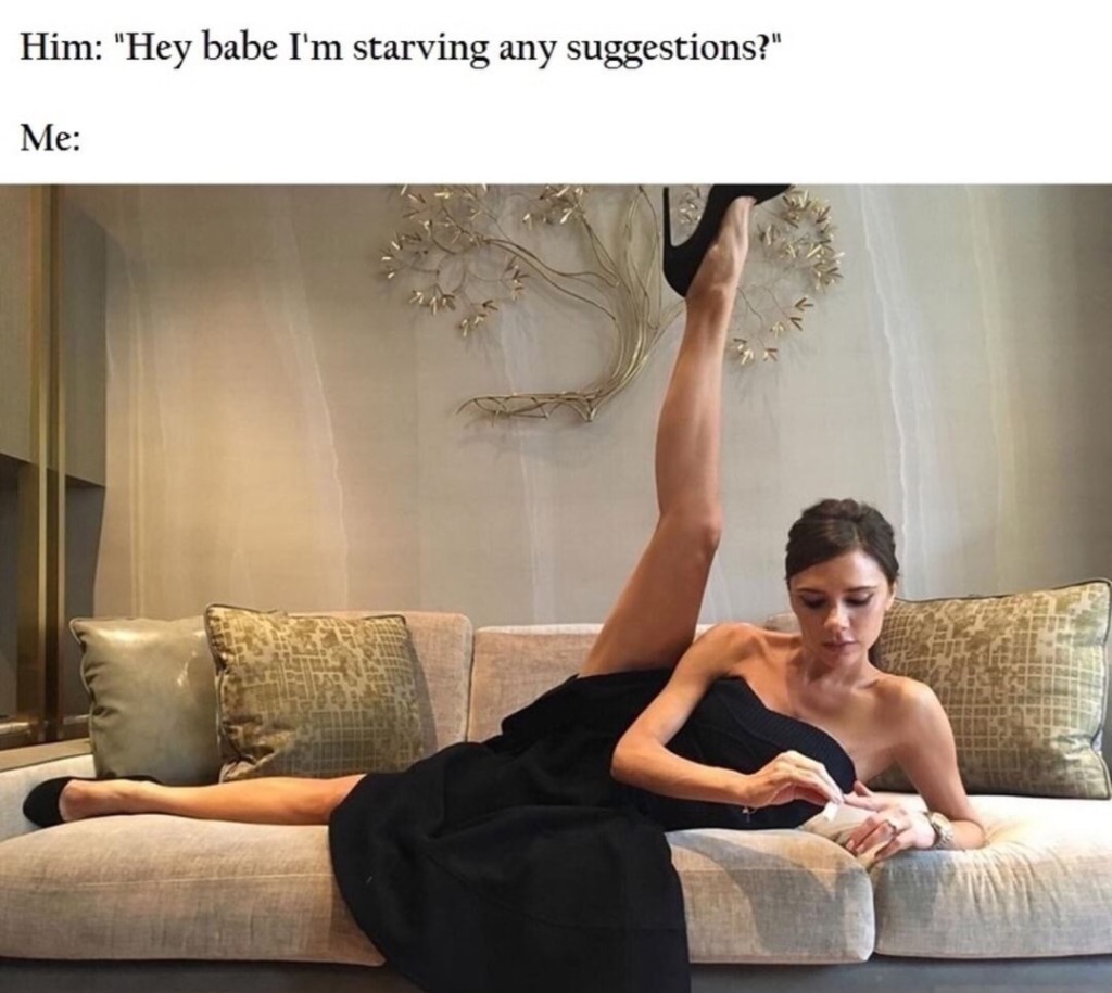 13. 他:「嘿寶貝我餓了,可以幫我想要吃什麼嗎?」 我: