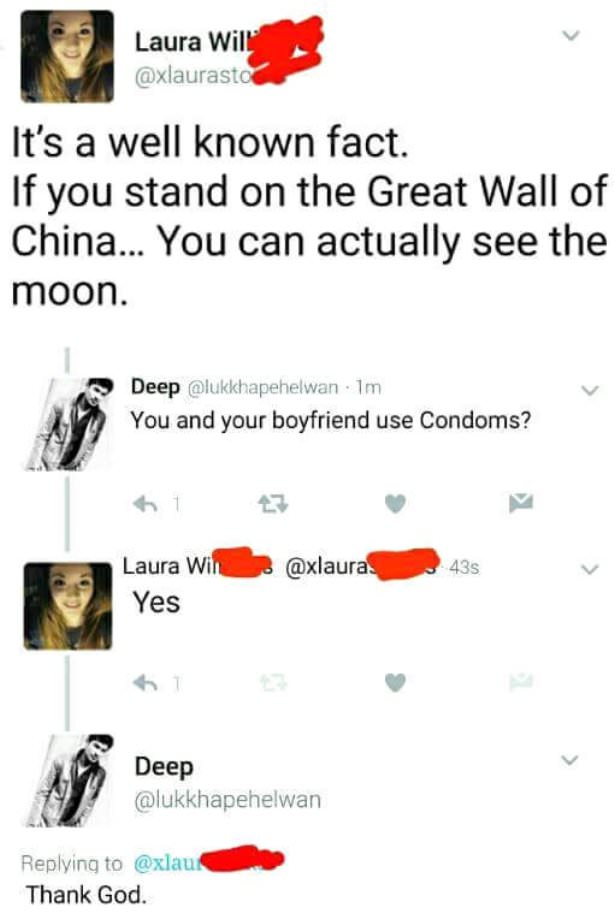 網友:「你跟你男友有在用套子嗎?」妹仔:「有」網友:「感謝老天」