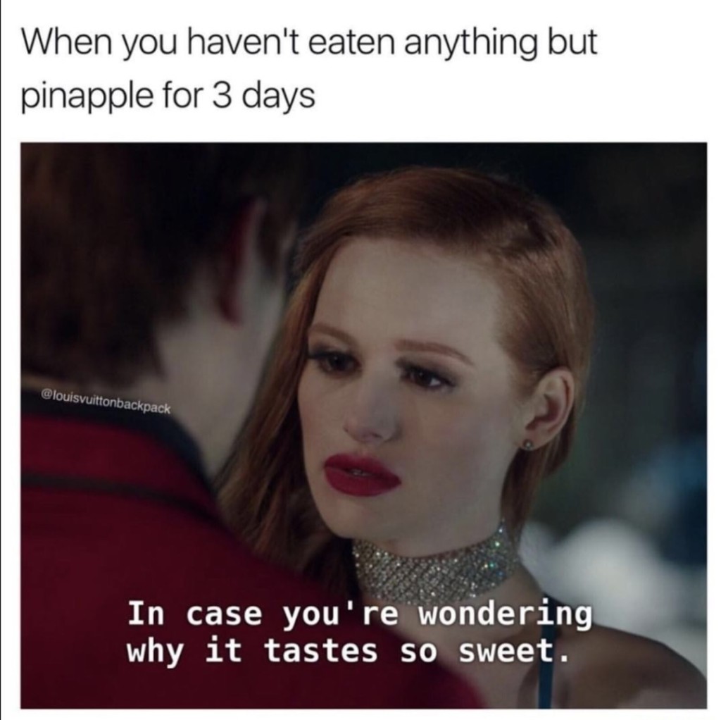 22. 當你連續3天都只吃鳳梨時:「這就是為何那邊舔起來甜甜的」