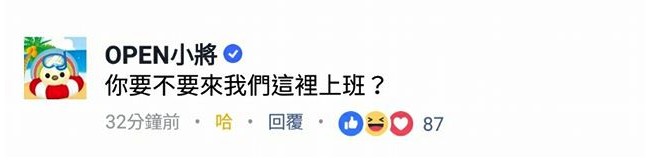 而OPEN小將更是在下方留言,「你要不要來我這邊上班?」緊接許多粉絲專頁也跟著挖角熊讚,送暖程度大爆表,嚴格說起來,熊讚其實根本就沒有失業啊!反而「熊生」有了更高潮的轉捩點呢。