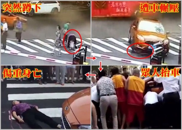 阿嬤因為突然停在路中央蹲下,加上死角關係,讓準備右轉的車子當場輾過,但女司機疑似因為忘記拉手煞車,導致轎車後退,造成輪下的婆孫二次輾壓,儘管當下路人合力將車抬起救出被捲入車底的婆孫,但阿嬤最後還是因為傷勢嚴重死亡。