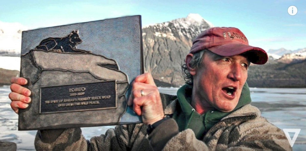 但這位獵人兼攝影師兼作家Nick Jans,在2003年的時候,帶著狗狗跟太太到阿拉斯加的小屋度假。而那天,他們家來了一位客人…