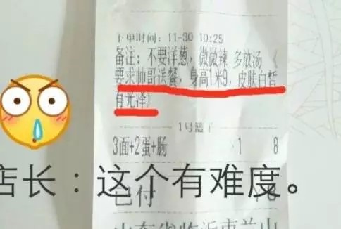 還有女性點餐員,要求外送員「要帥帥的笑起來很可愛」、「要求帥哥送餐,身高1米9」,似乎把點餐備註單當成阿拉丁神燈、挑男友聖地,想必這千奇百怪的備註,都讓外送員們看得哭笑不得,不過這種「特殊要求」只有失戀妹願望達成,也難怪大票網友會直喊「超暖」。