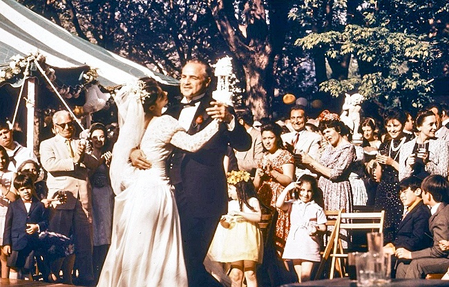 2. 《教父》:其中有一幕婚禮的場景,背後參加的群眾裡面其實都是真的黑幫份子和他們的親戚,面對第一部揭開美國黑幫內部社會狀況的電影,他們都想參與拍攝,給予「祝福」。