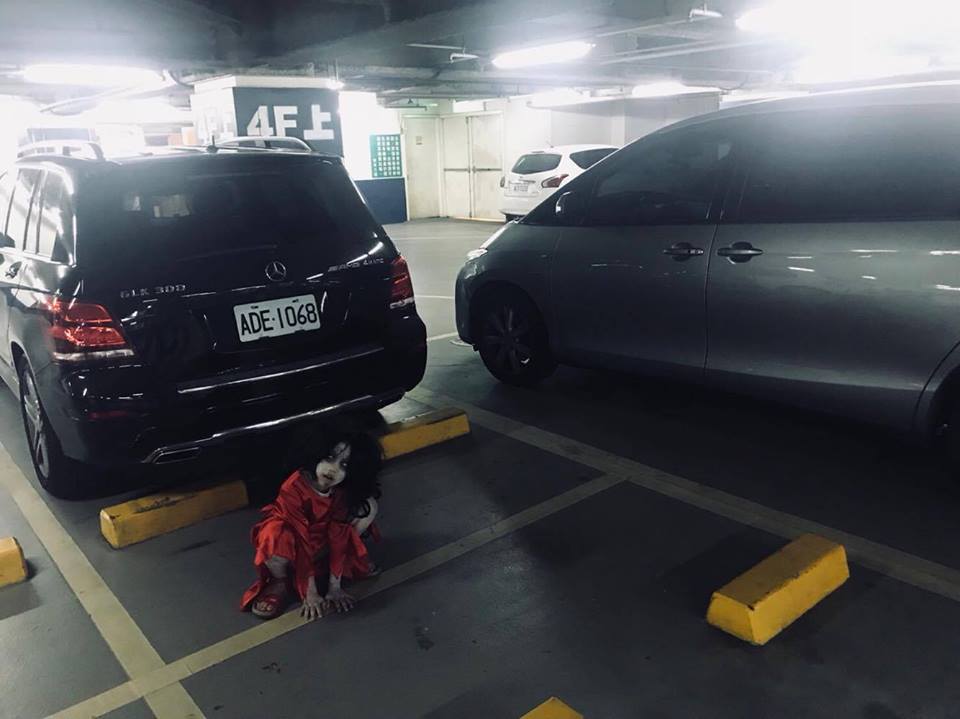 去年萬聖節小孩萌萌因為扮成「無臉男」爆紅全台灣,又到了今年萬聖節網友們特別小心,深怕在遇到西洋鬼魅。沒想到還是有網友被「紅衣小女孩」本尊嚇到,而且就埋伏在停車場車子後方,「差點嚇得尿都出來!」