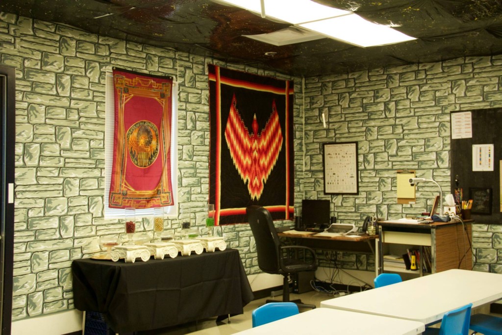 凱爾原先使用的教室,他就已經有用些《哈利波特》相關的東西來裝飾,面對這次換到更大的教室,他想要放手一搏,於是他自費上網買了許多材料,還有去二手市場找一些東西,最後花了70個小時,將整間教室、辦公室和會議室打造出魔法學院風格,宛如《哈利波特》電影裡的場景。