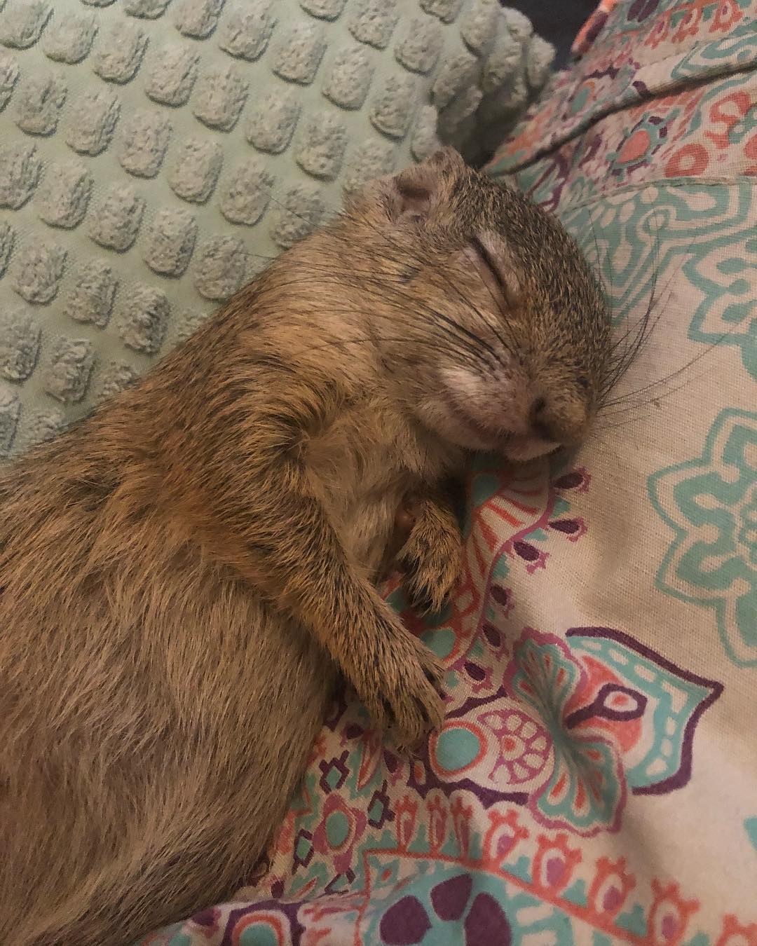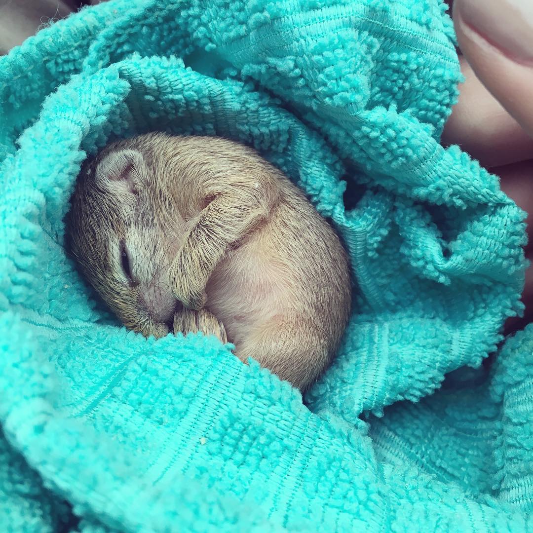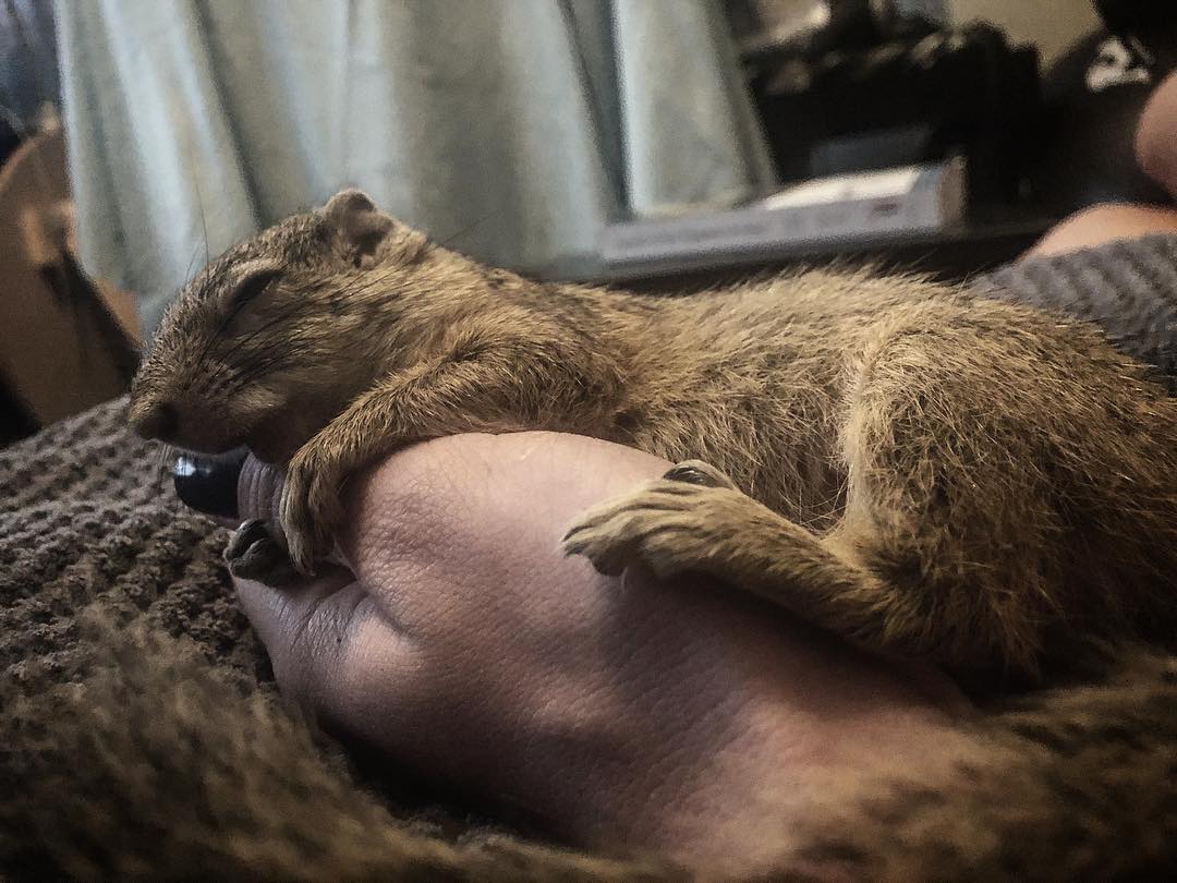 當時小小的Dingetjie眼睛都還沒睜開,並且不停發出害怕的叫聲,西蒙娜和男友都沒飼養過松鼠,因此他們在短時間內上網進行了很多研究,也問了比較專業的人,這時他們才知道飼養一隻松鼠一點也不簡單。
