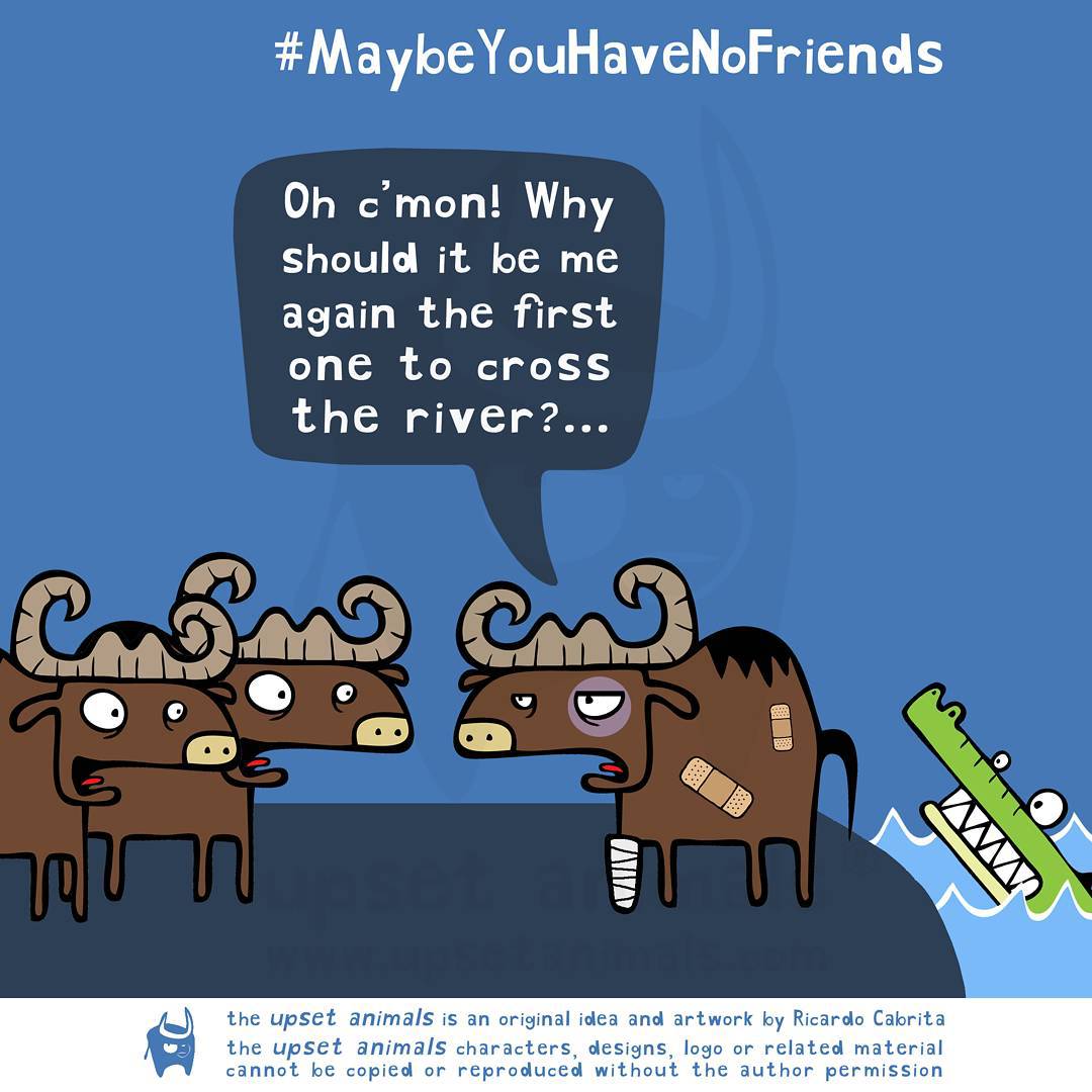 1. 「喔,拜託!為什麼每次都是我第一個當渡河的那個?」