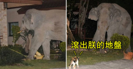大象闖民宅覓食!小貓「霸氣驅趕」專業保全都輸牠
