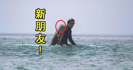 男子衝浪的時候被海浪沖來神奇的新朋友從背後「熊抱」?!