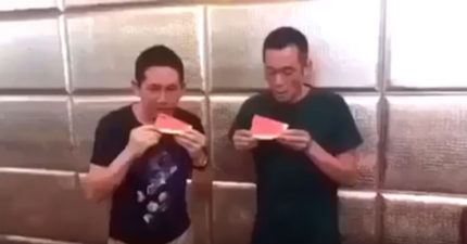 比赛吃西瓜「0.1秒KO」,右边参赛者「脑炸」反应让全场笑喷!
