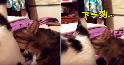 被闻屁股不爽「臭屁攻击」,下一刻闻屁猫咪秒崩溃…