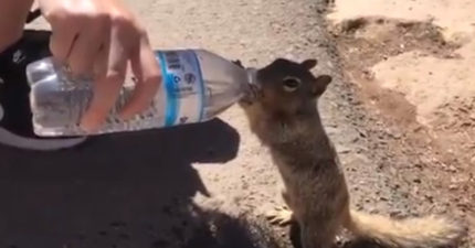 影/超口渴松鼠緊跟遊客 伸手手拜託「給我水喝嘛~」