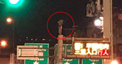 三重熱褲妹爬上8公尺號誌牌 突然「一躍而下」