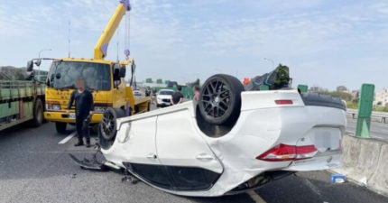 現場曝光!國1「5車連環撞」2車翻覆 釀6傷、3線道一度封閉