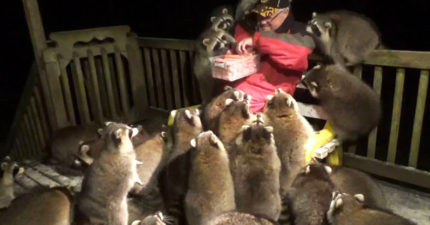「整群浣熊」每晚都來關心老翁…全是因為「老婆的遺願」