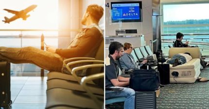 候機太睏了!天才男機場「自備充氣床」直接躺上去爽睡