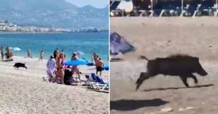 野豬「衝出海面」狠咬6旬婦 泳客逃難畫面曝