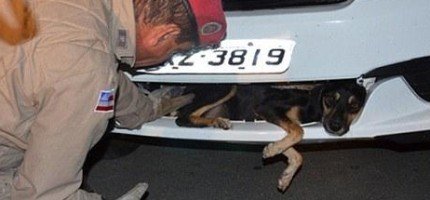 這對情侶開車開到一半在路中間看到一個小小的動物卡在土裡面掙扎。這是行車記錄器拍到的畫面。
