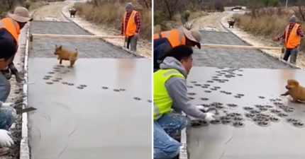 影/鋪路施工「狗狗闖入亂跳」 水泥蓋滿小腳印!工人反應揭曉