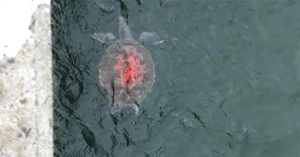 台南驚見海龜「背甲有佛」!水中浮鮮紅大字畫面曝 網怒:佛也發火