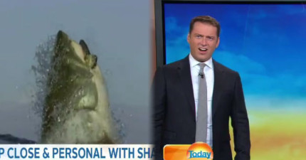 當主播看完一段超巨大白鯊跳出水面吃魚的瘋狂片段後,爆笑反應被網友立刻瘋傳!
