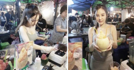 泰國夜市出現心胸寬大「水果西施」,顏值高到都忘記是在買水果…(有影片)