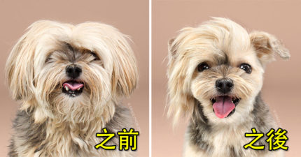 8張「證明髮型對狗狗也很重要」的狗狗剪毛前後比對圖。