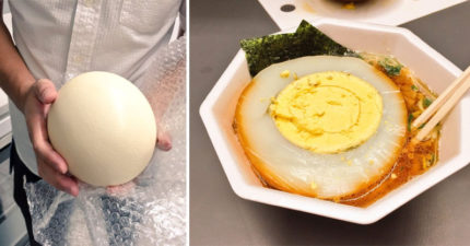 他們將這顆「超巨大的蛋」加到拉麵中,超猛敲殼過程「這麵真的無價啊!」