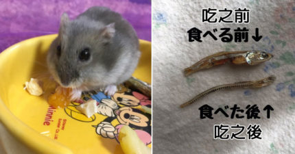 主人拍下倉鼠大嗑小魚乾對比照,放大看「完美魚刺根根分明」屌打人類!