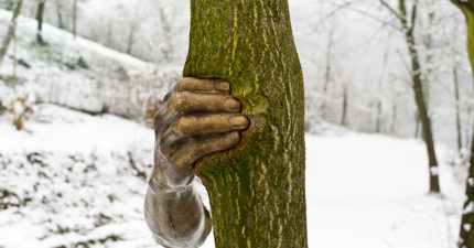 這隻銅製手在1968年就開始「抓著」這棵樹,現在的樣子比以前還「壯觀49年!」