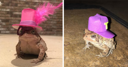 賴蛤蟆經常出現在他的陽台上,他就開始把他打造成青蛙界最時尚「帽子模特兒」! (7張)