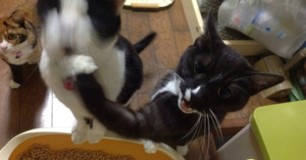 超兇貓咪養成了「飯前」一定要「亂打哥哥」的壞習慣,認真表情讓人差點噴飯! (9張)