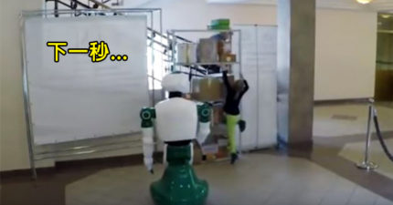 女童貪玩爬鐵架快倒塌,機器人「衝上前拯救」!(影片)