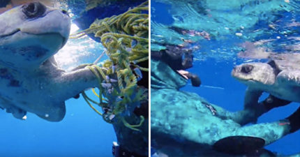 他發現「海龜被魚網纏住嚴重變形」出手拯救,「海龜獲救後舉動」暖哭500萬人!(影片)