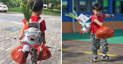 男童開學首日「背蔥上學」爆紅,媽媽「解釋原因」讓網友們都衝去買蔥了!