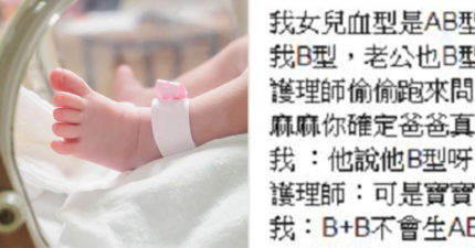 夫妻都B型卻生出AB型女兒!護理師嚇壞偷偷問:「親生爸爸是…?」一張圖看真相