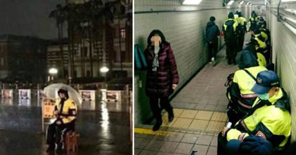 基層警員齊縮一排取暖「睡台北地下道」!雨衣當睡衣避寒…淋雨獨守總統府,署長:感到不捨!
