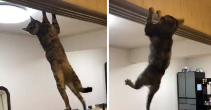 臂力超強喵星人「盪門框重訓」 回眸賣萌嬌喊:一下兩下~我厲害嗎?