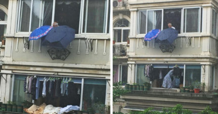 傾盆大雨衣服來不及收!樓上阿伯「一個舉動」網讚:暖男無誤