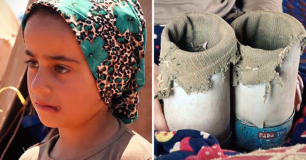 难民女孩只剩大腿 穷爸「拿铝罐当义肢」:这样她能站着玩了