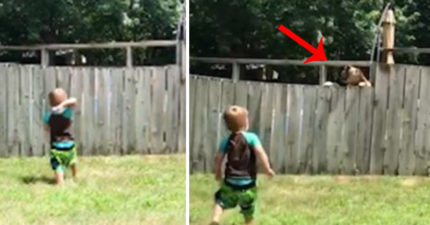 影/沒有東西可以阻擋我們!2歲寶寶「隔著一道牆」和鄰居汪嗨玩丟球