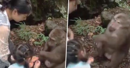 影/餵食一半突然收手 野猴瞬間暴怒「左勾拳揍小女孩」:你當老子吃素?