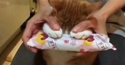 影/喵肉球被燙到!主人拿「紅豆冰棒」幫冰敷 頭低低高舉雙手:偶錯了~