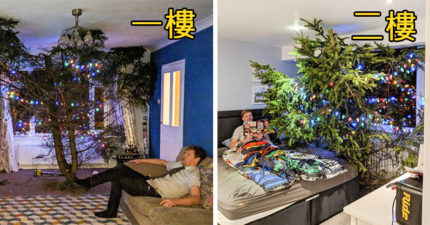他讓8公尺的聖誕樹「直接穿過整棟房子」 小孩興奮到尖叫網友卻冒冷汗:你老婆會恨你