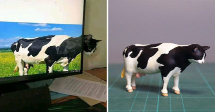 公仔達人把「錯視乳牛貓」3D化 「大餒餒」被笑翻:比頭大!